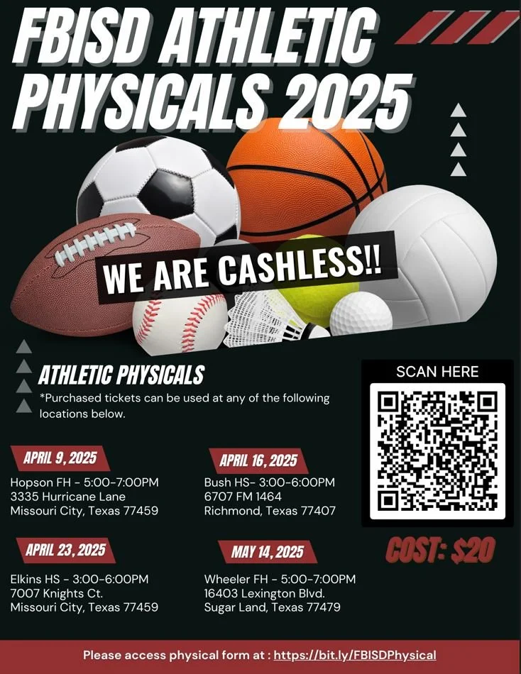 ALL students ) will need to have a physical dated after April 1, 2025. Current physicals that were used for the 2024-2025 school year will expire on May 31, 2025.